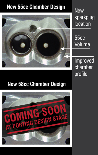 with As Cast ports and CNC machined chambers. The TP182cc cylinder head