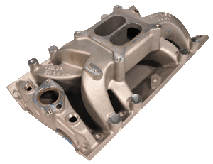 at lower engine speeds. The high-rise design of the new dual-plane manifold