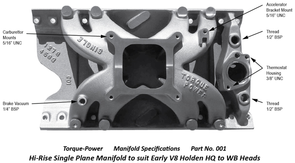 HQ-WB Hi-Rise Single Plane Manifold to suit Early V8 Holden HQ to WB Heads