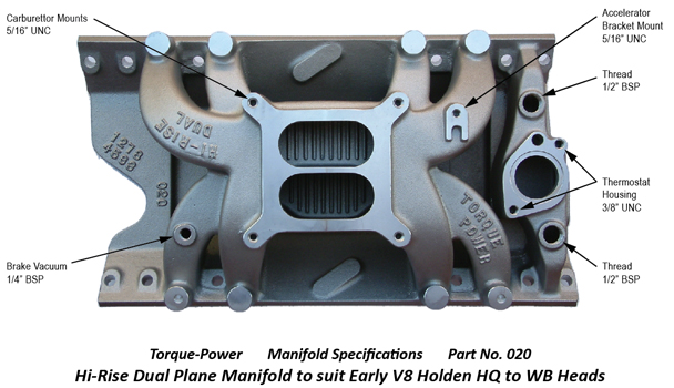 HQ-WB Hi-Rise Dual Plane Manifold to suit Early V8 Holden HQ to WB Heads